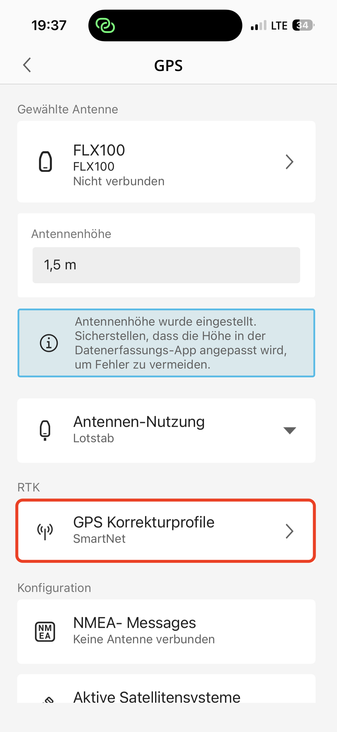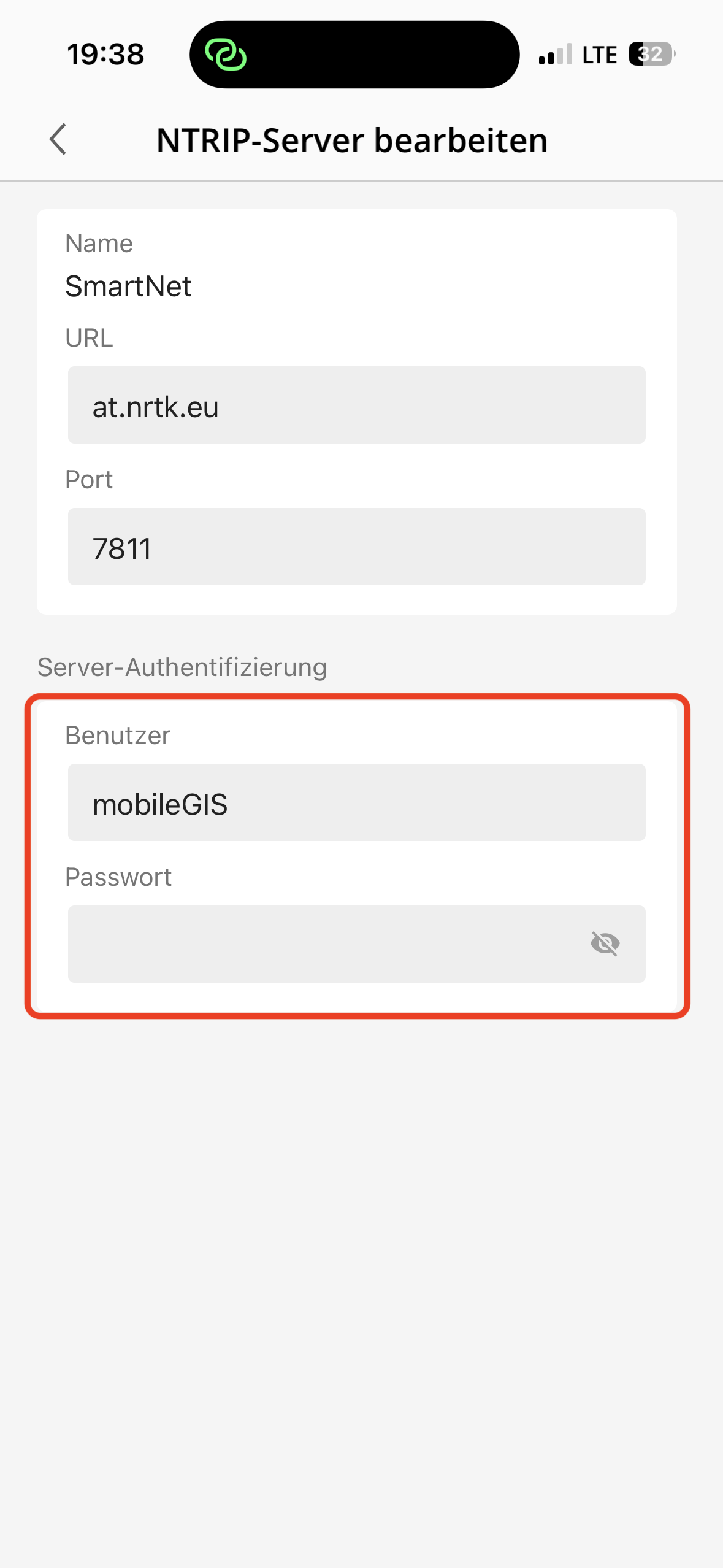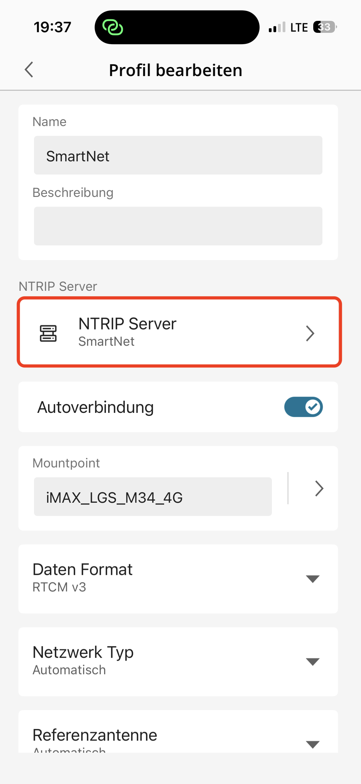Um Benutzernamen und Passwort für ein RTK Profil (z.B. SmartNet) zu ändern gehen Sie wie folgt vor: